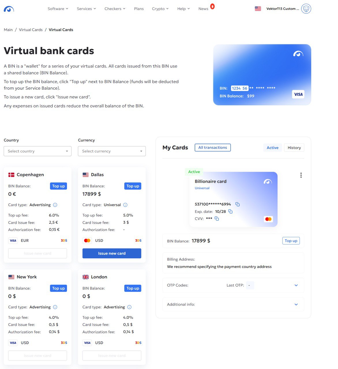 💳 VCC от Vektor T13 — мультивалютные карты с гибкими условиями пополнения 🔹